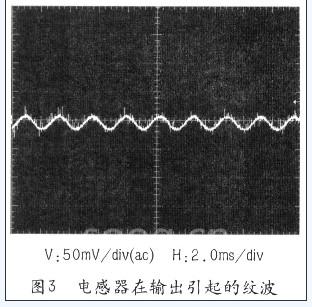 开关电源中低频交流纹波一般的说法是从交流电网引入的,输出滤波器无法滤除,主要靠系统闭环负反馈来抑制,但这极易引起电路振荡,损坏IGBT。事实上在供电容量足够,输入滤波合适的情况下,测不出交流输入带给直流输出的纹波。由于开关电源电路中谐波丰富,以致引起低频纹波的原因很多:工艺结构方面,如布线不当;器件的原因,如电容的ESR、电感参数(取直,气隙,磁芯的选择);元件间的配合,如L与C的乘积值等。尤其电感器对电源的稳定性和输出纹波影响。其中防饱和气隙是电感器在输出引起低频纹波重要原因,常常不易判断,这个纹波的频率随气隙的大小而变,范围在几百赫兹内。幅度大小与输出电压的值有一定关系,且不成比例,如图3所示。但电感磁芯没有气隙,又易饱和。非闭合磁芯,又使体积变很大,相对而言,设计了功率容量放大,不开气隙的磁芯,使问题解决。