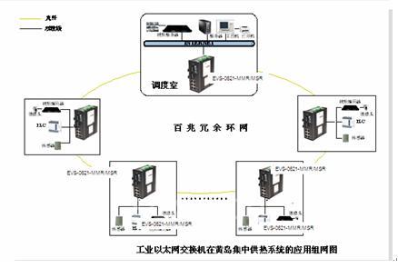 黄岛集中供热系统是青岛市第一个全自动无人值守供热系统,本次黄岛集中供热工程改造项目通过更换原有的部分数据通信系统的设备,采用工业以太网交换机采集各个换热站(包括水-水站、汽-水站)的全部技术数据,包括压力、温度、流量、热量、水电消耗及水泵状态等各种基础数据,并将各个子站的数据传输到调度室,调度可以在调度室了解到各个换热站的各项运行参数。本次工程改造项目满足了调度中心的统一监测和控制的要求,各个换热站供水温度将随着室外温度的变化而自动调节,相应减少了热损失,节约了能源,大大提高了供热水平。