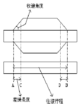 (6)差动距离:AC与DB为差绕长度。在AB往复的过程中,并不是每次往复行程都是由A点至B点,或是由B点至A点实际往复行程为A点至D点,D点至C点,C点至B点,再由B点至A点依序循环,主要是解决在卷绕过程中两边会有凸起的现象(俗称电阻效应)。