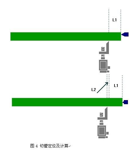 新型的双轴伺服切管机与普通的切管机最关键的部分就是轴向定位和切管长度控制及计算,新型切管机不需要平头来做切管的定位,而是只需要让伺服轴向往管方向走,等碰到了再进行长度定位,但是此方案需要高响应和一定的程序编程技巧,上面提到的外部中断进行脉冲切换是一个比较快又比较准的方案,通过图4-切管定位及计算,可以看到切管的长度分两部分组成:L1:刀头距,此距离可以进行机械调整,一般调整完以后不需要作大的修改;L2:补偿距离,此补偿距离就是根据实际切的管的长度需要作一个小的调整;所以切管长度L=L1+L2。以往旧的切管机L1就等于切管的长度,而且在空间上刀与头的位置的绝对不变的,但是新的机器刀与头的位置是整体随轴在走的,这就是为什么新的机器可以一次送料多次切割的关键所在。