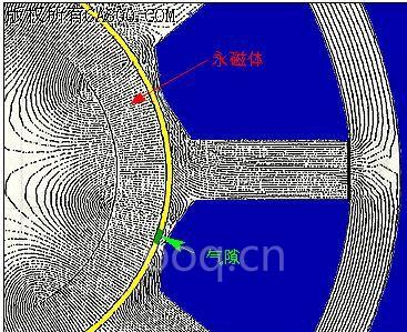 普通的永磁同步电机机构如图一,定子为普通的硅钢片,导磁性能良好;转子表面覆盖永磁体,转子内部依然为导磁性能良好的铁。转子与定子之间的气隙约0.2毫米,与普通异步电机相仿。