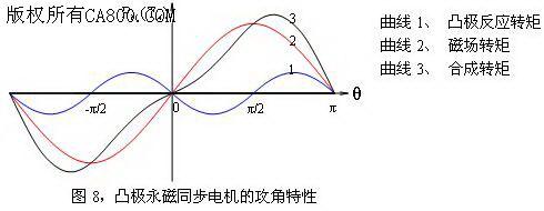 由于凸极反应转矩的影响,隐极永磁同步电机的功角特性变差。