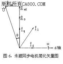 忽略定子电阻和漏抗以后,可以得到永磁同步电机简化的矢量图如图六。