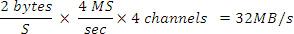 例如,一台16-bit的设备(两个字节),其四路通道的采样率为4 MS/s,有: