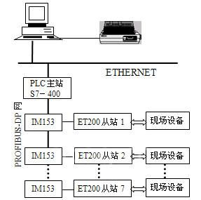 SIEMENS 公司是国际上知名的大公司,其PLC系统成熟、性能稳定、价格适中、备件方便,是一款性能价格比比较高的PLC系统。SIEMENS S7-400 PLC系统采用工业PROFIBUS 局域网形式,结构安全、稳定、可靠、可扩充性强。本设计考虑PLC和扩展单元之间PROFIBUS连接,PLC和总站之间使用ETHERNET连接。这样的设计使得PLC系统相对独立,而操作站与其他网络的连接较为灵活。