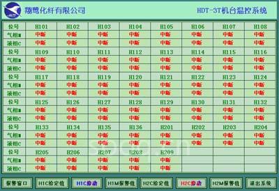 翔鹭涤纶纺纤HDT-3T机台现场总线型温控系统采用AIBUS现场总线型总体设计,以AI-2000工业级触摸屏电脑作为上位机,多台AI调节器通过AIBUS通讯协议现场联接,触摸屏电脑直接与AI调节器通过RS-485串行通讯实现90个通道温度集中监控。AI调节器上的所有参数可以在触摸屏中显示,也可用触摸屏电脑设定下载,数据显示刷新率高,便于实时监控,温度控制在±0.1℃。本系统同时监控四条拉丝生产线。 |