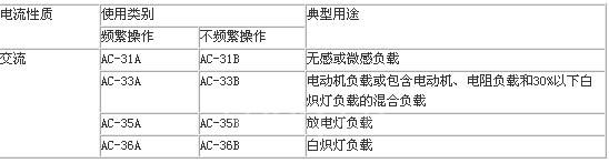 根据表中典型用途,地铁配电场所内使用的负载类似于混合负载,因此应选用AC-33A或B,对电源型开关来说,应属于频繁操作设备,其使用类别显然应采用AC-33A。