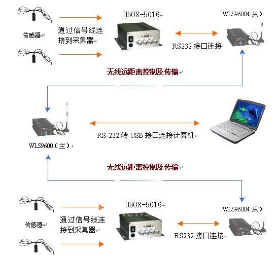 系统采用UBOX-5016爆破振动智能监测仪、WLS9600无线遥测模块,与速度传感器相连,组成多点工程爆破振动无线遥测系统;