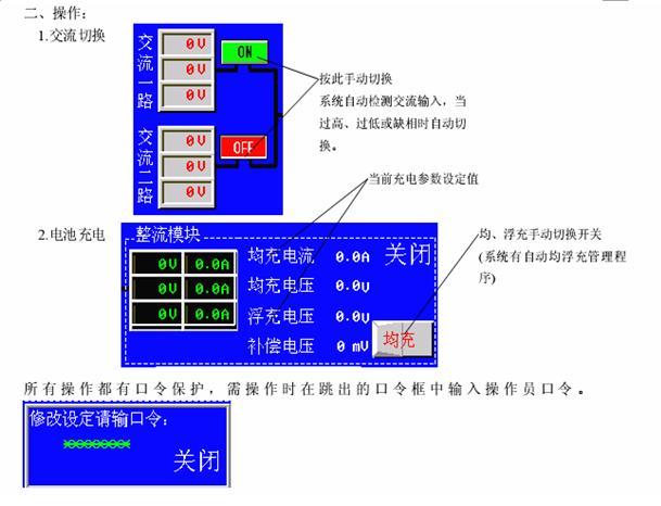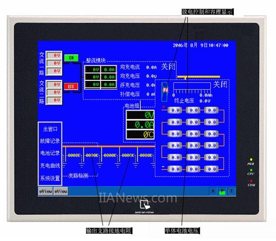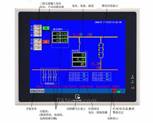 监控系统包括主监控器、电池巡检仪、操作界面、支路馈线绝缘检测传感器等部份组成。功能完备、智能控制、无人值守,有自动化综合管理接口。7.7英寸 彩色 DSTN 液晶屏、640 × 480 像素。数据记录、掉电保持。