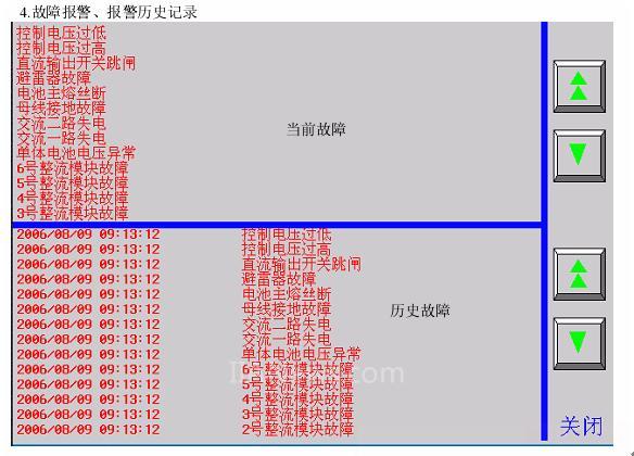 当前故障在主屏下方用跑马灯方式醒目显示。记录保存二百条历史故障,掉电保持所以记录。每个单一故障都有相应的信号软压板,在故障暂时不能排除的情况下可断开报警信号输出。