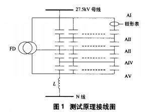 普通电流表要保证测量毫安级电流的准确度是很容易做到的,但对于钳形电流表来说,却是非常困难的,要受到钳口的大小、闭合缝隙以及导线在钳口中的位置等诸多因素的影响。更为严重的是在牵引供电系统谐波的干扰下,一个毫安级钳形表的空载测量值在2A以上,根本无法在现场应用。要想从改进钳形表测量精度上保证电容的测量精度,几乎无法实现。从现场的测试结果来看,钳形表测量到的主要是2、3次谐波的干扰值,要想消除外界干扰的影响、提高测量准确度也必须避开谐波的影响。