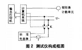 根据电容原理拟定测试仪由计算机系统、钳形表传感器、标准电容修正系统、电压输出单元组成,如图2所示,该装置整体重量不足3kg,适合现场携带。