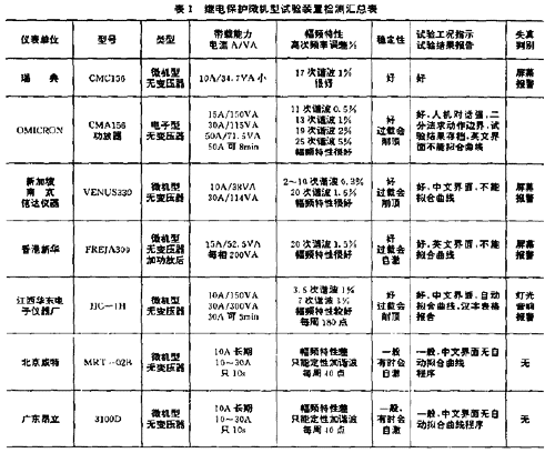 该项试验是考核试验装置进行动态测试的能力。如果暂态响应不好,两次精工电流测量的结果相差会较大,特别是在小电流下的情况更是如此。这就要分析是保护装置的暂态分散还是试验装置暂态特性所引起的。同时要考核精工电流拟合绘线的结果,尤其是数据分散的情况下,拟合绘线是否会产生不合理的振荡,以此考核绘图软件的质量问题(图3)。国内外继电保护微机型试验装置的性能比较见表1。
