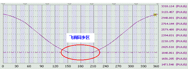 图8 ASD-A2软体产生的飞剪裁切电子凸轮速度曲线