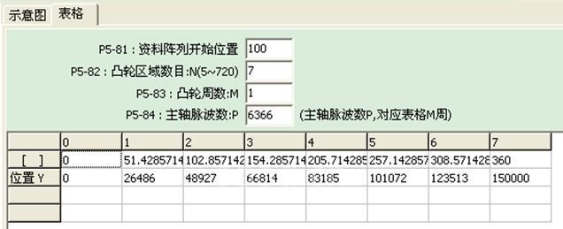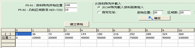 图9 送料轴凸轮曲线位置表格