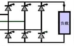 三相交流电输入经过换相电感接到3个SCR桥臂组成的整流器后变换成直流电压。通过控制整流桥SCR的导通角来调节输出直流电压值。由于SCR属于半控器件,控制系统只能够控制开通点,一旦SCR导通之后,即使门极驱动撤消,也无法关断,只有等到其电流为零之后才能自然关断。所以其开通和关断均是基于一个工频周期,不存在高频的开通和关断控制。