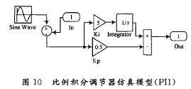 比例积分调节器仿真模型(PII)如图10所示,其输出波形如图11所示。