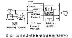 正弦宽度调制模型仿真模块(SPWM)如图12所示。