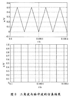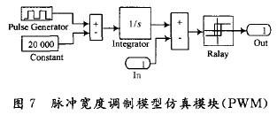 仿真利用积分关系来产生三角波,Simulink中Sources有脉冲发生器(Pulse Generator),使其产生频率为20 kHz,幅值为4×104,占空比为50%的信号。