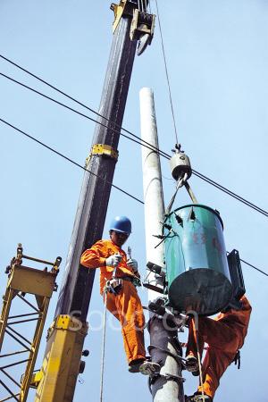 昨天上午,苍南电力公司技术人员将一台容量为80千伏安的安装到了龙港镇下垟郑花园街的一根电杆上,这也是首批60台30至80千伏安单相变压器在鹿城、瓯海、龙湾、苍南等6个县(市、区)试点投运使用。据介绍,它较三相变压器具有损耗低、体积小、有利提高电压质量等优点,每台单相变压器可供20多户居民照明。