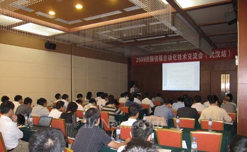 [2009年9月23日,武汉] 2009 年 9 月 23 日,“2009 德国倍福自动化技术交流会(武汉站)”在武汉武昌纽宾凯国际酒店隆重举行。作为“基于 PC 控制技术的开放式自动化系统”先进理念的倡导者,德国倍福邀请各新朋老友齐聚一堂,就自动化技术展开深入探讨。倍福中国总经理梁力强先生携资深工程师在此次研讨会上简单介绍了倍福中国公司及技术和产品,会场气氛热烈。