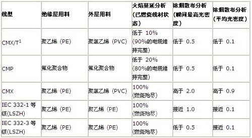 由此可知,材料选用对于电缆的防火能力有极大的影响。以 CMX 电缆为例,虽然该电缆基于成本考虑,外层选用阻燃性较佳的 PVC 材料,但因内部以 PE 做为绝缘层,反而使得这样的组合展现最差的测试结果。