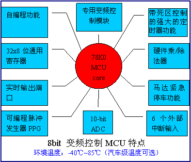 更适合低成本180°矢量控制NEC的8位MCU特有功能: