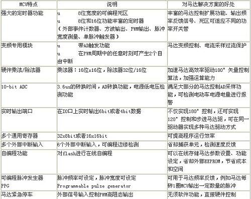 图1显示了8位变频控制的MCU的特点,表3给对图1中的各个功能给出了说明。