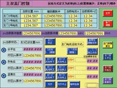 主门靠3个电机(主1、主2、主3)运动来实现开关。门的3个位置分别为低水平位、升轨位、竖直位。在低水平位为关门,主1、主2、主3先同步运动到升轨位,然后主1、主2停下,主3继续向上运动把门拖到竖直,这时为开门。关门过程是主3拉门到升轨位,然后主1、主2、主3同步运动到低水平位,关门结束。