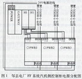图1所示为邹县电厂FF系统汽机侧控制柜电源分配图(ZouXian DCS FF Power Layout for Turbine),位于OVATION系统DROP6/56的扩展柜背面。