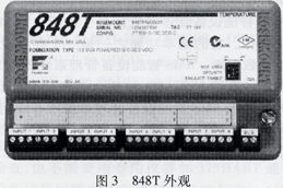 图3所示为848飞的外观图,在该图的下部标有INPUTl~8的端子为8个通道的模拟量信号输入端子,从左至右每3个端子对应1个通道,每个通道的3个进线端子从左至右标有端子1、2、3。