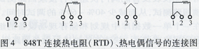 图4所示为848T连接热电阻(RTD)、热电偶信号的连接图。