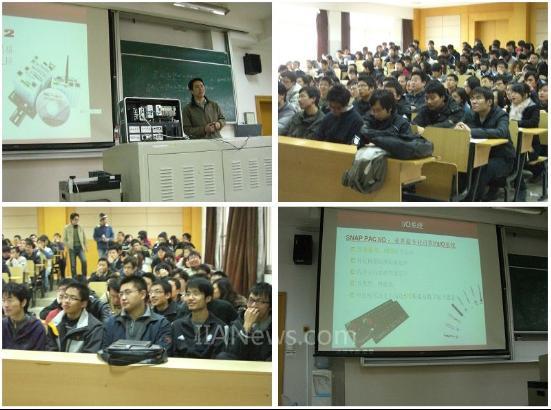 俞涛先生首先播放了OPTO 22公司的短片介绍,位于加州Temecula市的OPTO 22总部被一片郁郁葱葱的绿地包围,环境宜人,同学们饶有兴致地在地图上寻找着Temecula市。在简短介绍了公司的发展历史后,俞涛先生结合了自动化方面最基础的知识和时下的主流技术,为同学们详细讲解了PLC DCS SCADA RTU PAC等重点名词概念,同学们争先回答,教室内热闹非凡。