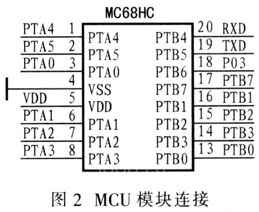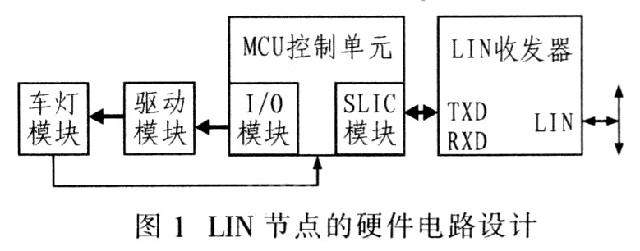 只要按模块的需要设置相应的寄存器,就可以自动按照LIN总线协议进行和发送数据。这相对于SLIC模块的单片机而言,则降低了软件开发上的难度。MCU模块的连接如图2所示。