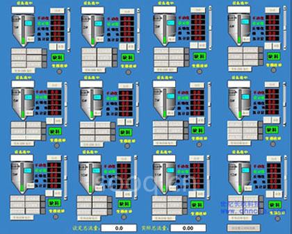 4.3 配料设定界面实时显示每个料仓的料位和料种,显示当前实时下料速度及设定下料速度。设定系统PID控制参数的界面,并能改成手动控制变频器频率来控制每台配料秤称的下料量。有每台配料秤超载或缺料报警显示,方便操作人员及时调整下料参数,保证系统稳定运行。