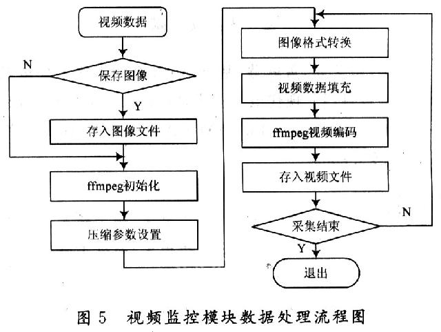 (2)视频监控数据存放部分:通过ffmpeg软压缩方法,将采集到的视频数据按指定视频格式实时压缩成文件存储于硬盘中。