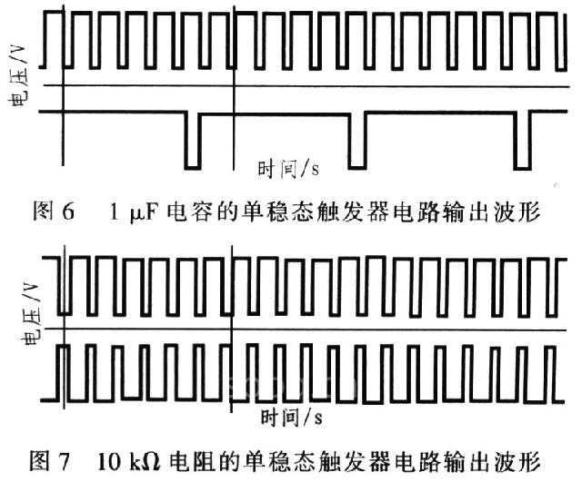 由上述可知,555定时器组成的单稳态电路由输入脉冲信号的下降沿触发,使其输出状态产生翻转,另外,在暂稳态过程结束前,u1必须恢复为1,否则电路内的RS触发器为不确定状态,输出不能维持0状态。因此这种单稳态电路只能用负窄脉冲触发。如果输入脉宽大于输出脉宽,则输入端可加RC微分电路,使输入脉宽变窄。