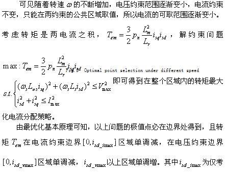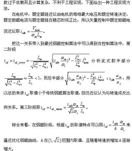 此种方法不受电机参数的影响,便于工程实现,但是没有考虑全部电机运行约束的限制,无法合理分配电流以使转矩最大化,而且由于电机内部 ,所以此算法无法保持励磁电压恒定,励磁电压会随着转速的上升而不断增大,可能导致电流无法有效跟随,影响运行稳定性。
