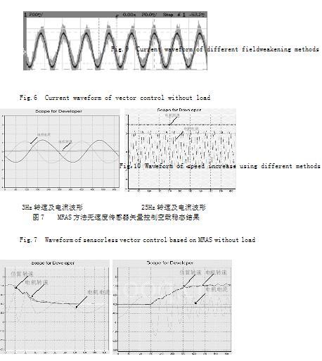 由于矿山机车工作环境的特殊性,在设计矿山机车牵引电机矢量控制系统时必须考虑速度估算环节和弱磁控制环节,基于MRAS方法的转速估算方法可以同时估算电机的转速和磁链信息,简化了系统结构,较为适合应用于牵引电机矢量控制系统中。优化弱磁控制可以保证电机的最大转矩输出,使电机有更好的带载能力和更宽的运行范围,较为适合应用在对电机转矩输出要求较高的牵引电机矢量控制系统中。