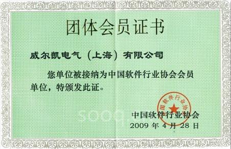 威尔凯在相继去年络筒机变频软件著作权和鼠笼式大功率软起动软件著作权登记获证以后,积极接受中国软件行业协会的邀请,加入中国软件行业协会,并于2009年4月被中国软件行业协会正式接纳为中国软件行业协会会员,并授予团体会员证书。
