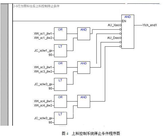 对于电机复杂的启停控制条件可以采用图3所示的功能块进行编程,使启停条件一目了然,并且缩短了编程的行数。
