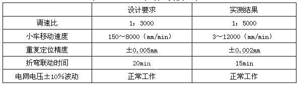 IMS伺服控制器调速比为1:5000,远高于设计所要求的1:3000。经过实用考核验证,小车在该调速比下能够可靠运行,并满足两轴进给大型直缝管制造的进给要求。