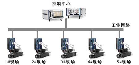 NI的虚拟仪器技术使用成熟的计算机技术和模块化的高性能硬件为我们系统的实现提供了强有力的支持。PXI系统能提供最佳的性能,Compact Vision System(CVS) 系统是NI公司PAC(可编程自动控制器)系列产品中专门用于视觉采集检测的产品,提供了最为坚固的硬件结构。 整个检测系统是一个利用NI CVS和PXI产品建立起来的高性能集成化实时系统,其中PXI系统由嵌入式实时PXI控制器PXI- 8146 RT和PXI机箱等模块组成,在本系统中承担着控制中心的重要作用;实时紧凑视觉系统使用了CVS-1450,在本系统中担当前端工业现场的图像采集和测量系统地初步处理的任务。分布在多个生产流程的CVS系统通过1394摄像头采集数据并进行前端处理,之后通过工业以太网将数据传输给PXI控制中心。(如图1所示)