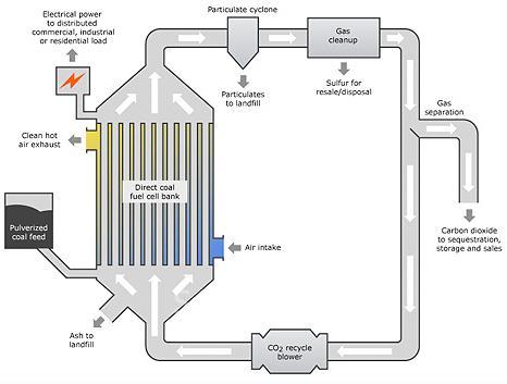 煤碳很黑很脏,燃料电池大多都是采用氢燃料,这些传统的观念已在人们的意识中根深蒂固。但是,新一代的“直接碳”燃料电池将挑战这种传统观念。在传统氢燃料电池中,氢燃料的获得过程比较复杂。“直接碳”燃料电池则是利用氧气与煤粉之间的电气化学反应来产生电量。这种技术的好处是:发电所需要的燃料(煤碳)不再需要燃烧,而且能源利用效率比传统的烧煤电站高出两倍。美国加利福尼亚州“直接碳科技公司”预计,到2010年,该公司将实现一个10千瓦容量的原型发电系统。而俄亥俄州的“包含能源公司”则准备利用这种技术为一个小型灯泡提供电力。当然,这项技术仍处于初期阶段。两家公司都希望能够根据这些原型系统研制出“直接碳”燃料电池,提供一种清洁、高效的碳能源。