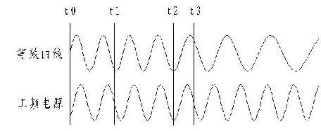 图12是依据τp=20s的系统的电动机感应电动势的等效曲线与工频电源的相位比较图。