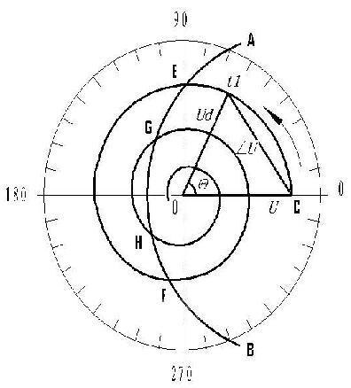 据此,绘出断电后电机感应电压Ud在极坐标下衰减的向量示意图,如图5中Ud所示