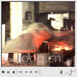 锻锤击打的次数由车轴的形状及重量决定。机床完成工作后,另一个机械手就会将车轴运送到修边机处。从这里开始,车轴将被自动传送到用于校准的压床处。在那里,另一台机器人夹起车轴并将其放在一个车架上;然后一个吊车抓斗将该车轴从车架上取下,并将其放在用于冷却的架子上。