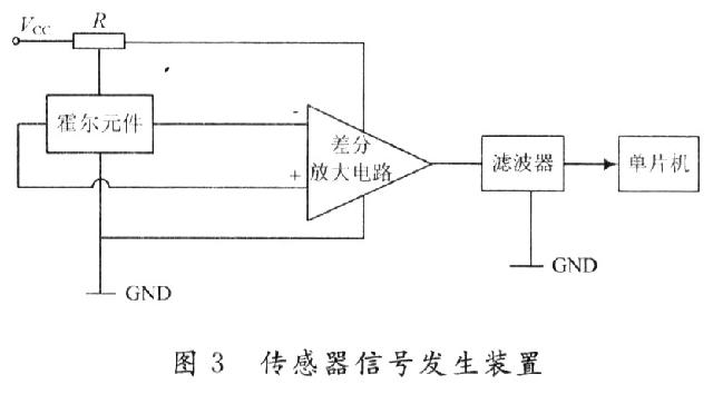 本系统中的第一部分由图3中的霍尔传感器装置提供,由霍尔元件(A44E)、差分放大器和滤波器组成。其输出电压与霍尔元件位移成比例,具有较高灵敏度,能够产生出符合要求的电压信号。