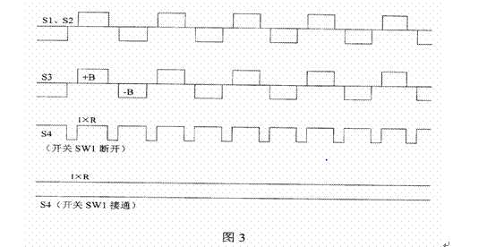 4)通过在续流电路的开关SW1断开时,由可调恒流源电流i值A确定校验器的输出信号S3,再在续流电路的开关SW1闭合时,通过在对信号S4的测量,得出实际校验器输出信号S3的正负幅值B:
