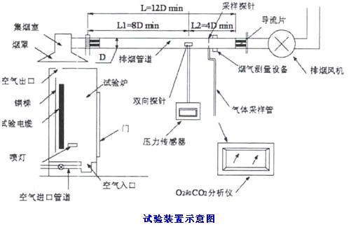 试验装置是依据EN50266-1(如IEC-332-3装置)建立的,但是在试验过程中增加了测试热释放和产烟特性所需设备。试验证明借助其它标准(如建筑制品的标准),试验的测量技术,对于评价电缆燃烧性能也是很适合的,这些技术包括热释放和产烟特性的测试。相比于现行的EN520266试验方法,本试验方法具有更加综合性的评价体系,它的测试更加精确、灵敏度更好,对燃烧性能等级的评价更加广泛。